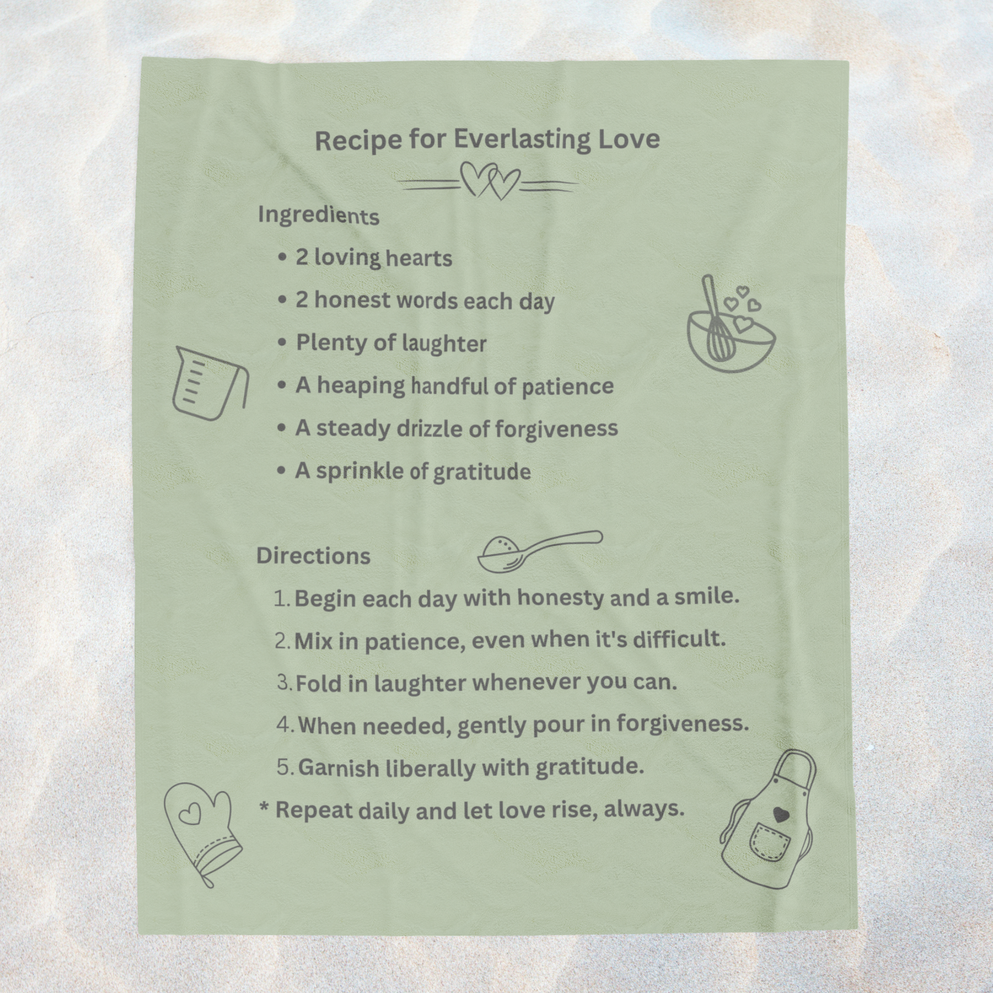 This “Recipe for Love” blanket serves up cozy comfort with a dash of playfulness—a fun, recipe-inspired design for food lovers and couples.